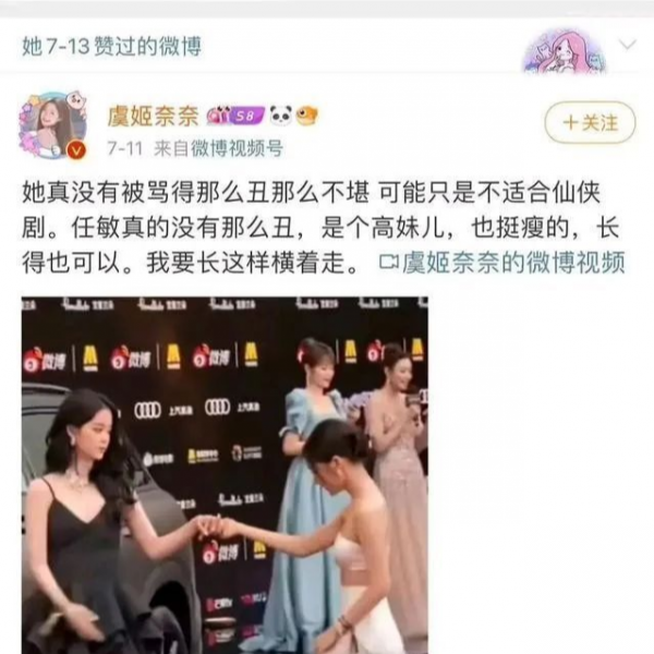 最近,张雨绮和任敏两位女星因一条点赞动态登上热搜榜第二,而这条动态涉及到了任敏的外貌争议。网友驳斥说任敏长得丑的观点,而张雨绮点赞似乎意味着对任敏颜值的欣赏和后辈的支持。