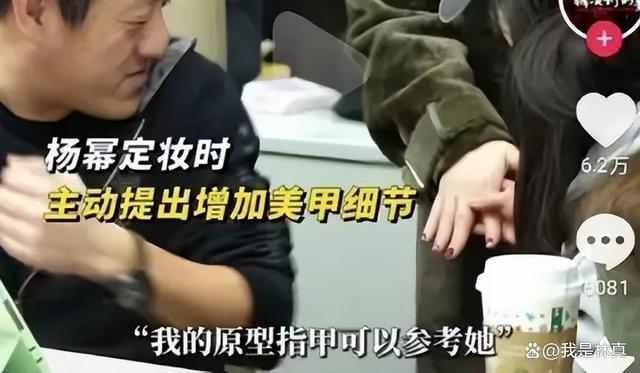 杨幂为了凸显角色的"穷"形象,提议加个"美甲残缺"的细节。可是,她在说这事儿的时候,居然直接拉起身边工作人员的手,说:"就类似这样"。这一举动,立马引起了广大网友的不满。