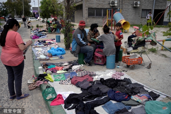 当地时间11月13日,阿根廷布宜诺斯艾利斯省,人行道上陈列着易货或出售的旧衣服。越来越多的阿根廷人依靠以物易物的方式生存。图自视觉中国