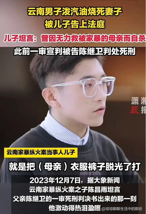 近日,云南一起家暴案件引起了社会的广泛关注。一名男子将汽油泼在妻子身上并点燃,导致妻子严重烧伤最终不治身亡。令人震惊的是,该男子的亲生儿子将他告上了法庭,称自己曾因为无力解救被家暴的母亲而喝农药自杀。