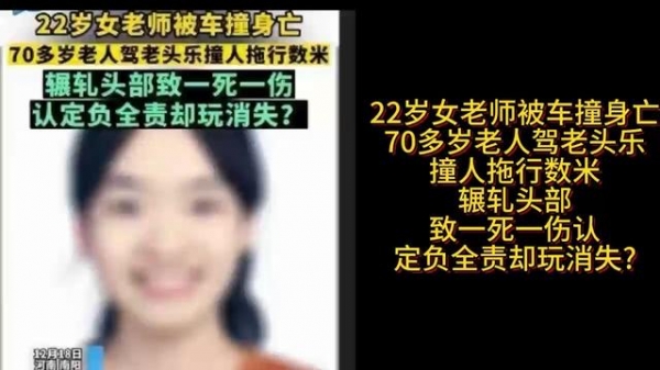 22岁女教师被老头乐碾压头部身亡,七旬老人开老头乐撞人致一死一伤,认定全责却玩消失?
