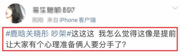 因为这样的例子太多了,尤其身处娱乐圈这个环境中,所以,鹿晗和关晓彤恋爱了这么久却没有结婚的打算,不少网友担心两人走不到最后,还有网友猜测,狗仔点名爆料不怕被告,是不是两人再为官宣分手做准备,让大家提前有个心理准备?