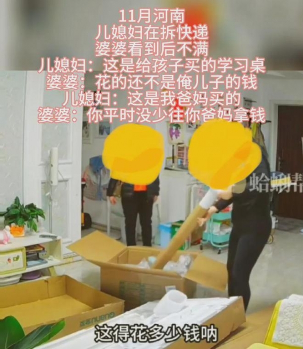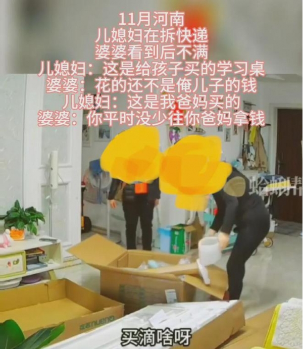 11月16日,河南,一段婆婆嫌弃儿媳妇乱花钱,指着快递怀疑儿媳妇偷偷给婆家钱的视频引发关注。网友看了两人的争论,忍不住吐槽,儿媳妇没有卖给你!