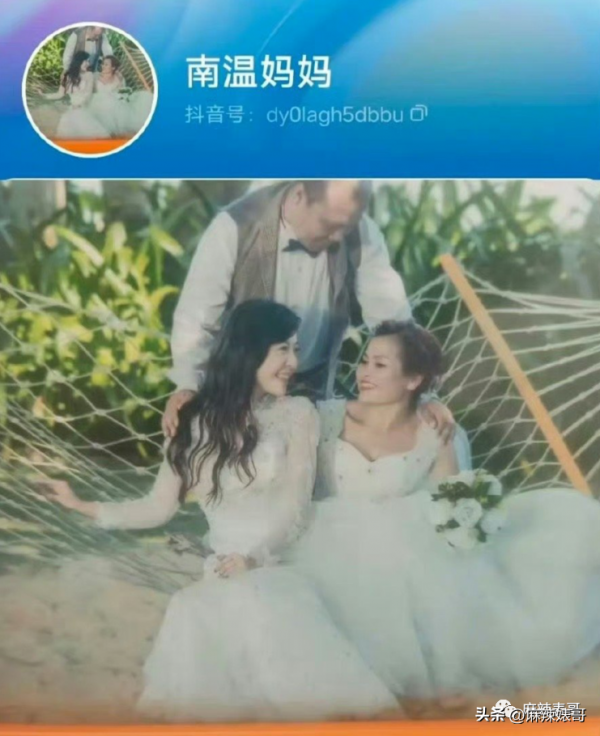 加之后来有了某音,一个叫"南温妈妈"的人疑似是李金铭节目里的"婆婆",用了他们拍的婚纱照当头像。