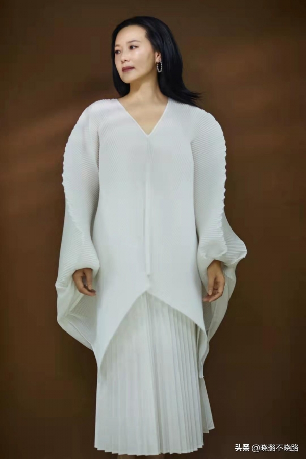 腿粗、胯宽女人穿衣除了要注意修饰下半身外,还要做好身体的平衡,避免上轻下重,给人一种失衡感。穿搭中加入一些设计感,就将设计感十足的地方上移到脖颈或上半身吧,焦点上移放松下半身。看咏梅的这条丝绒裙,领口带大蝴蝶结,夸张华丽,衬得裙子更加时尚显贵,同时也将人们的视线引导到脖颈处,弱化下半身,只关注上身是不是很苗条?