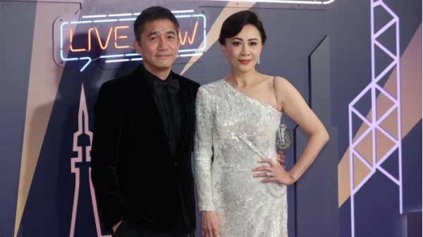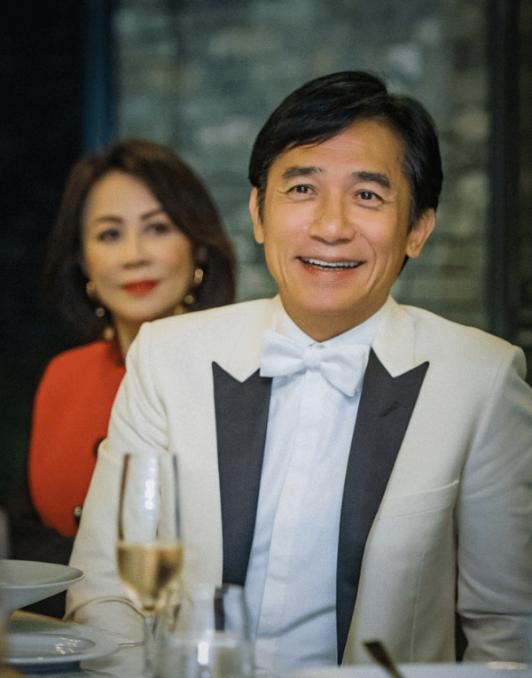梁朝伟和大咖们聊天,刘嘉玲就乖巧地坐在一旁陪伴。