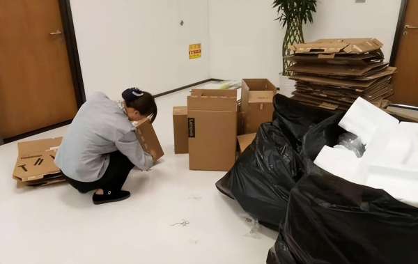 在打扫到旅客存放东西的柜台周围时,地上的一个纸箱引起她的注意,此时纸箱被放在机场的托运推车上,而周围也没有人看着。