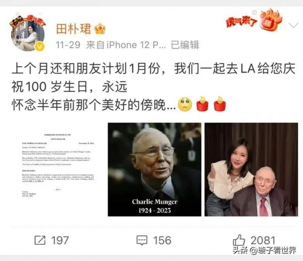 99岁的芒格去世,看看这个配文,这境界