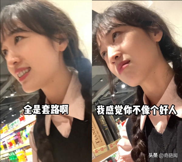 最后男生一把拉着女孩手腕,女方故作矜持道:"你跟着我干什么"?男生闻言:"我和你一起问路,我怕你走丢了",闺蜜听后继续套路:"你是渣男吧?怎么全是套路?一点诚意都没有",男生则是丝毫不慌。