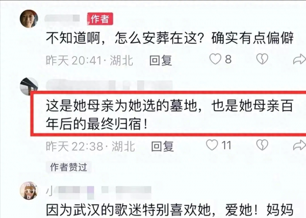李玟生前多次表达自己的爱国情感,强调自己是"武汉女儿"。她的家人选择将她葬在武汉,或许是因为李玟的特殊情感联系以及她的妈妈和亲戚在这座城市的生活。这一决定不仅是对李玟的一种致敬,也是一种强烈的表达,她与武汉这座城市的深刻情感联系永不褪色。