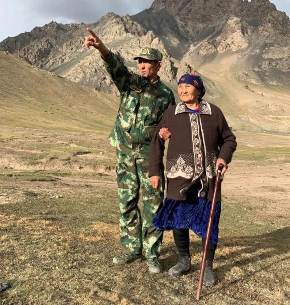 布茹玛汗与二儿子麦尔干在边境线上