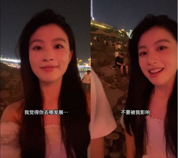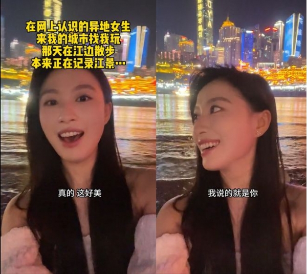 视频画面中女孩夸赞重庆江景很好看,接着便向身边的网恋男生抛出问题:"你觉得我美吗"?男生闻言也是毫不吝啬的夸赞女孩很漂亮,突然女孩话题一转表示:"自己要回老家了,父母在催我",