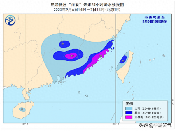 "海葵"给福建、广东等地带来强降水,未来仍有降水影响。9月6日14时至7日14时,福建东部和南部、广东中东部、江西南部、湖南东南部、海南岛中部、台湾岛西部等地部分地区有大雨,其中,福建东部和南部、广东东北部和东南部沿海、江西南部、台湾岛西北部等地部分地区有暴雨到大暴雨(100~220毫米)。