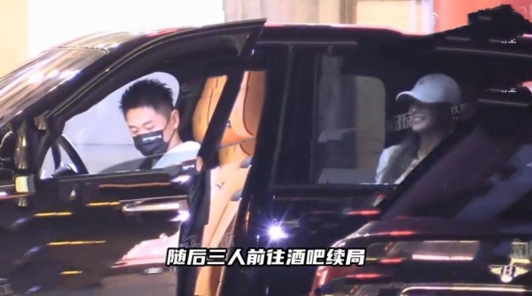 随后一位司机开了一辆豪车过来,两位美女跟着买超一起上了车,据悉三人又一起前往酒吧,看来夜生活才刚刚开始。