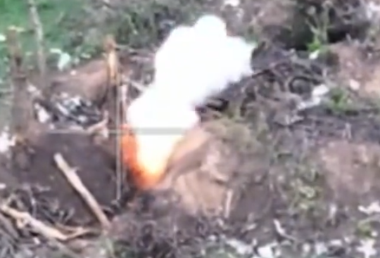 俄军海狸小队的无人机飞手在侦察中,发现了在战壕中隐秘活动的乌军。FPV无人机精准命中这名乌军士兵,并引燃了战壕内的可燃物。