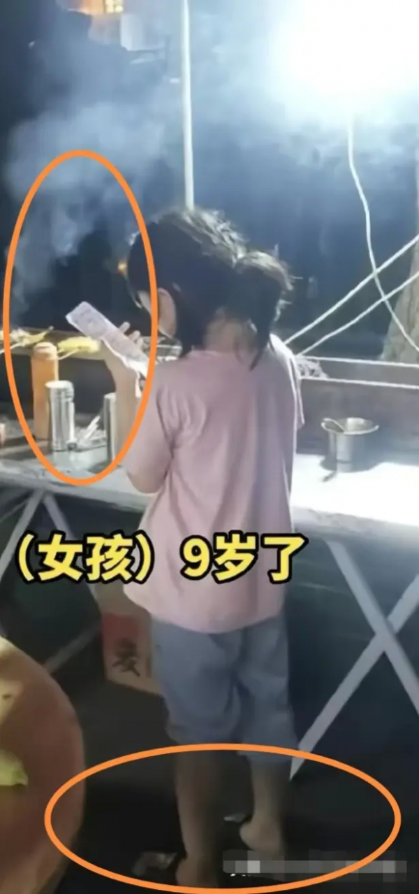 网友撞见一小女孩在烧烤摊帮父亲干活被打骂。