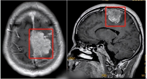王先生意识到不对劲,立马前往医院检查,结果头颅磁共振检查显示左侧顶部颅内脑外实性肿块。王先生的脑袋里长了个矢状窦旁脑膜瘤,直径达到5.6cm。走路鞋子会掉就是因为压迫到神经,导致肢体偏瘫。