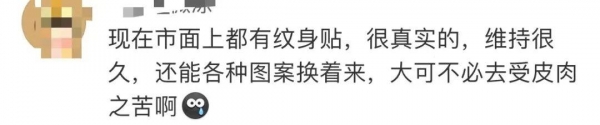 "文不文身、为什么选择去文身,说白了,是每个人的自由和选择。"但作为医生,见过了太多悔不当初的患者,相文忠还是想提醒下想要尝试文身市民,一定慎之又慎,从多方面综合考虑,也可用比如文饰贴纸方式作为替代尝试,给自己一个缓冲期适应考虑。