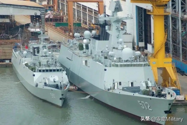 056型(左)和054A型(右),新护卫舰的尺寸和综合能力介于这两种军舰之间