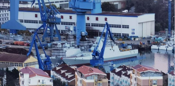 辽南造船厂远景,中间是停泊在干船坞前的新设计,图片来自社交媒体