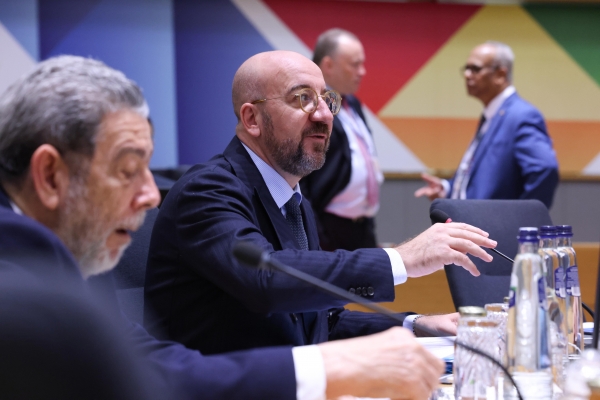 圣文森特和格林纳丁斯总理与欧洲理事会主席米歇尔,图自欧洲理事会网站