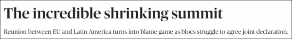 欧盟各国领导人和外交官最后承认,欧盟与拉美分歧难弥、地区关系紧张,其中有着深刻的历史根源。美联社也称,当欧盟试图通过加强经济合作,以遏制中国在拉美影响力之际,拉美国家更愿意控诉西方在该区域内施行数百年的殖民主义和奴隶制统治。