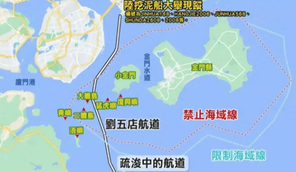 近日,大陆海警船在实现了对金门海域的实际管控后,我国也在金门海域启动了刘五店巷道的疏浚工作。
