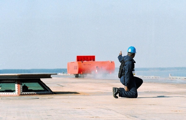 福建号航母的电磁弹射试验视频在网络上引发了人们对电磁弹射器的独特优势的热议。观察视频中溅水的位置,我们能够发现其中隐藏着一项复杂的具体需求问题。传统蒸汽弹射器虽然功率大,却难以做到小功率的弹射力度。