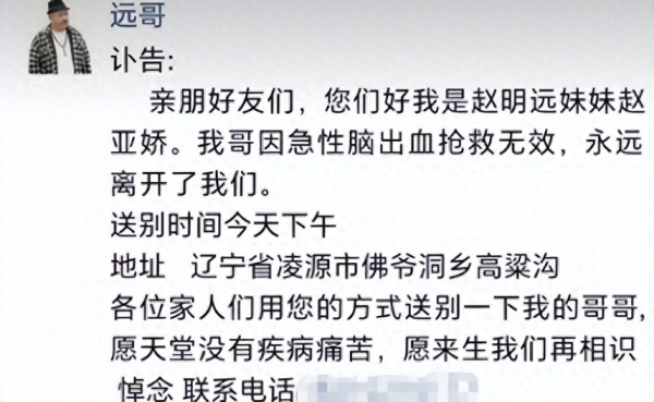 随后没多久,赵明远的妹妹又发了一则讣告,这时候大家才意识到,原来赵明远真的与世长辞了。