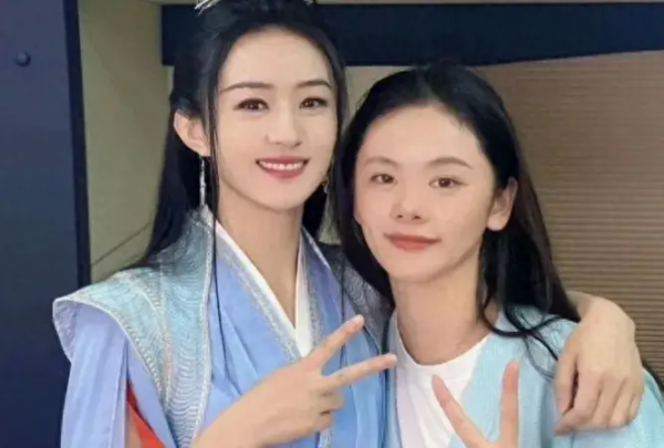 照片中,赵丽颖与替身搂肩比耶,大方合影,姿态自然而亲密无间。