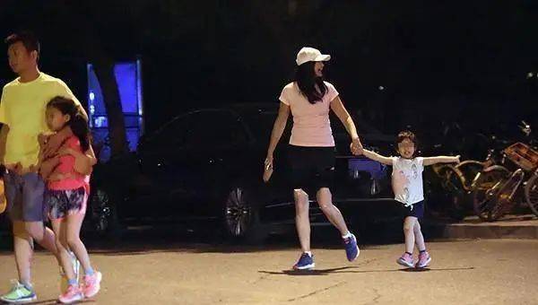一起运动散步,两人一手牵一个女儿的画面,完全是一家四口既视感。女儿对瞿颖也表现出很依赖的态度,牵着她边走边笑。