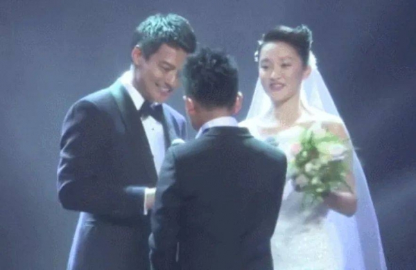 周迅结婚那天,陈坤是证婚人,陈坤的儿子上台为周迅递婚戒,当时陈坤介绍说"这是我儿子",周迅立刻笑了补上一句,"对,也是我儿子"。