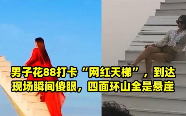 现在人喜欢各种"网红"类东西,像什么网红奶茶啊,网红餐厅啊……很多人都喜欢所谓的,网红潮流和文化。近日就有个男子热衷,去网红景点打卡。他利用国庆去了"网红天梯",想一睹这地方的风采,他还为此花费88元门票。可是真当他见到了,这个所谓的网红天梯,却感觉到自己的钱,花费的不值得,后悔了。