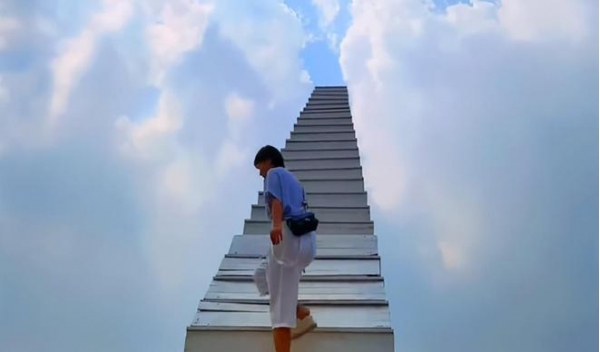 但是他来了之后,看到天梯前面一堆人排队,而且都是女孩,他一个大男人倒觉得,有些不好意思。那些女孩就是每个人,爬上去花几秒拍照就下来。这些女孩拍这些照片,都是为了发朋友圈,和某音的,要说玩吧,几秒钟能玩到什么。