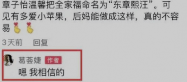 不过对于葛荟婕的这些言论,章子怡一直都没有回应,可能是想用实际行动证明她对小苹果真的是视如己出吧。不过章子怡也确实做到了,在一次全家外出看展后,葛荟婕首次松口,承认了章子怡对女儿的爱。