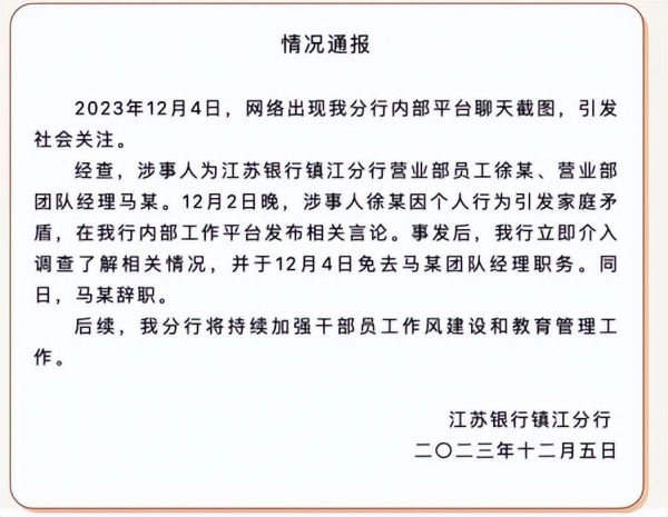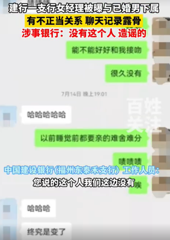 银行女经理被曝与男下属存不正当关系,聊天露骨;工作人员回应