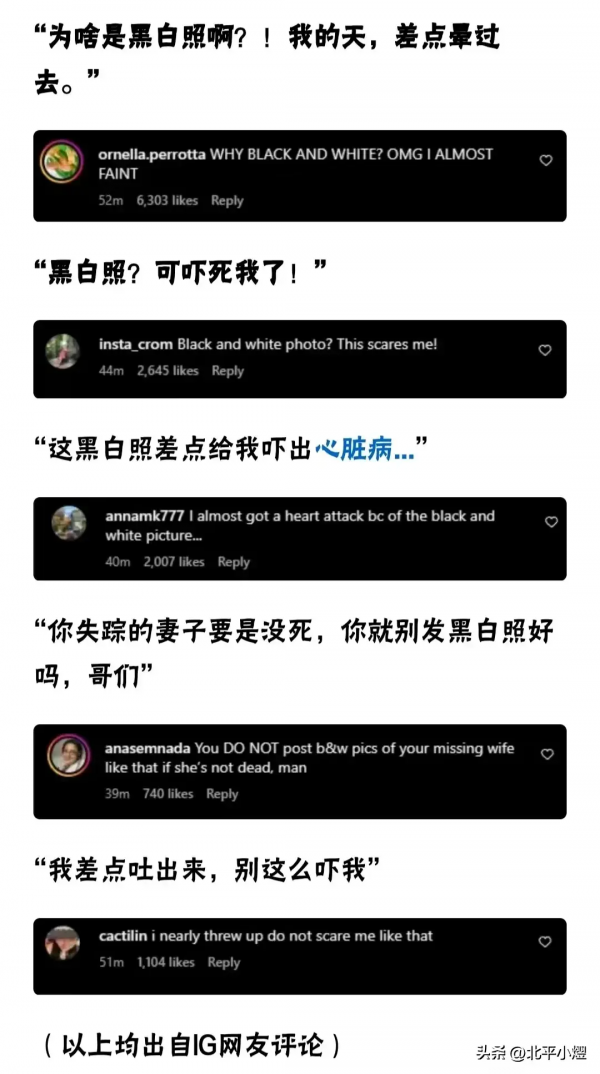 网友纷纷吐槽:黑白照也太吓人了,威廉,你失踪的老婆是不在了吗,如果没死,发黑白照真的好吗?