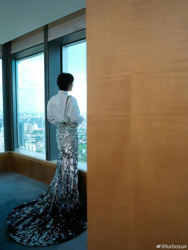 不过从背影看,这条长裙确实很美,显得孙俪的身材更细长了。