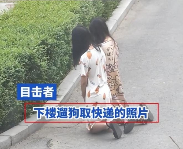 下楼遛狗的居民表示,自己遛完狗之后又去取快递,前前后后大概1小时的时间,回来时发现她们还跪在那里。