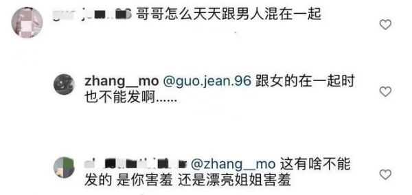 张默每每发布照片,女生都会在下方回复一个爱心的表情。