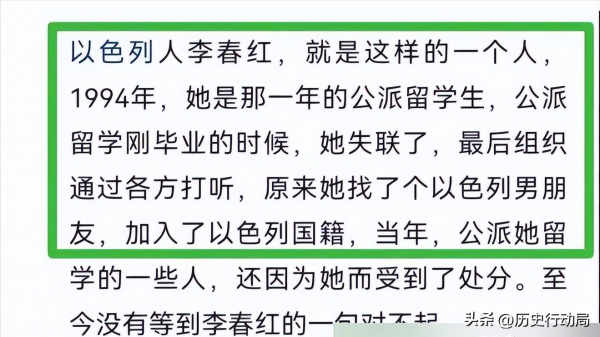 在九十年代,利用公费留学的机会去了以色列读书,期间突然失联,在当地与结交的以色列男友结婚生子,并主动放弃了中国国籍,成为以色列公民,在当地生活了30多年。