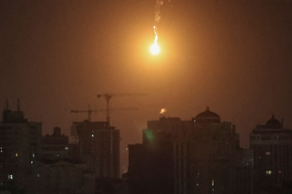 当地时间11月25日,乌克兰基辅遭俄军无人机大规模袭击,城市上空发生爆炸 图自IC Photo