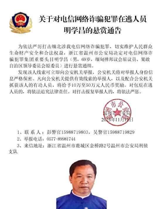 中国发布通缉令的背后,是对这一地区电信诈骗犯罪的强烈不满和愤怒。中国政府坚信,明学昌等人涉嫌故意杀人等犯罪活动,有充分的证据支持这一指控。因此,中国采取了果断的行动,宣布对明学昌等人展开全面追捕,并悬赏10万-50万资金以奖励协助抓捕的个人或团体。