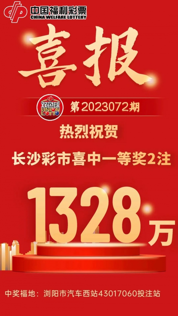 6月25日晚,中国福利彩票双色球游戏第2023072期开奖。本期双色球开出红球号码为2、6、10、24、25、33,蓝球号码为9。全国中出一等奖7注,单注奖金为664万余元,湖南省揽获4注一等奖,其中长沙浏阳市43017060投注站一位彩民喜中2注,收获奖金1328万余元。据悉,此次中出的双色球大奖系浏阳福彩历史上中出的最大的奖项,距离浏阳市6月23日中出的快乐8游戏318.7万大奖仅隔两天,这也是今年长沙市浏阳市第三次中出500万元以上的大奖。