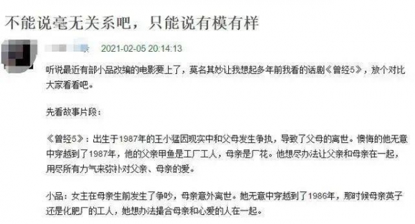 她导演的《你好,李焕英》被网友指出与话剧《曾经5》里面女儿穿越这个主题有异曲同工之处。