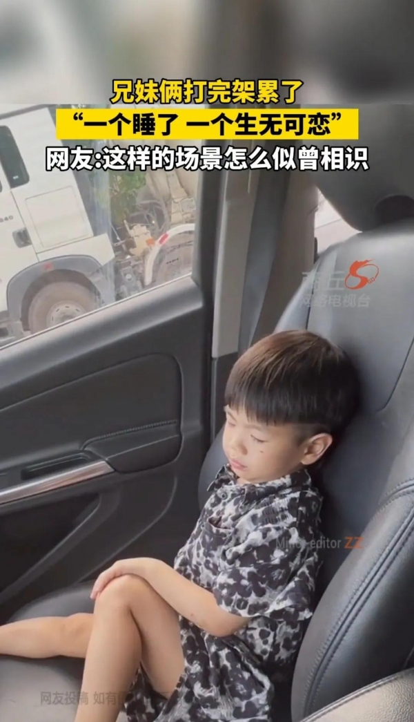 这一幕被拍照并上传到网络上,引起了网友们的热议。有网友调侃说:"男孩心大,女孩气性大。"这似乎也是这对姐弟俩之间的真实写照。