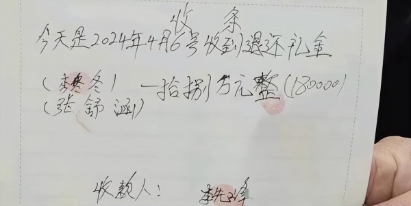 李某虽不情不愿,但面对这样的事也没办法,拿到钱以后,就给张某家打了一个收条。