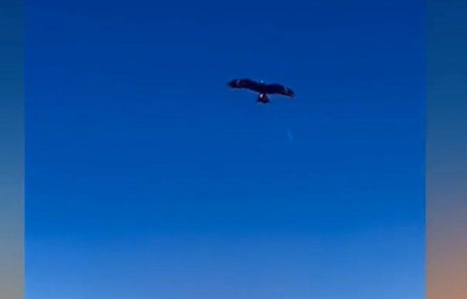 户外聚餐老鹰盘旋 巴里坤男子扔肉空中"投喂"