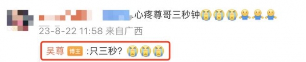 有网友表示"心疼尊哥三秒钟",吴尊幽默回应"只三秒"?