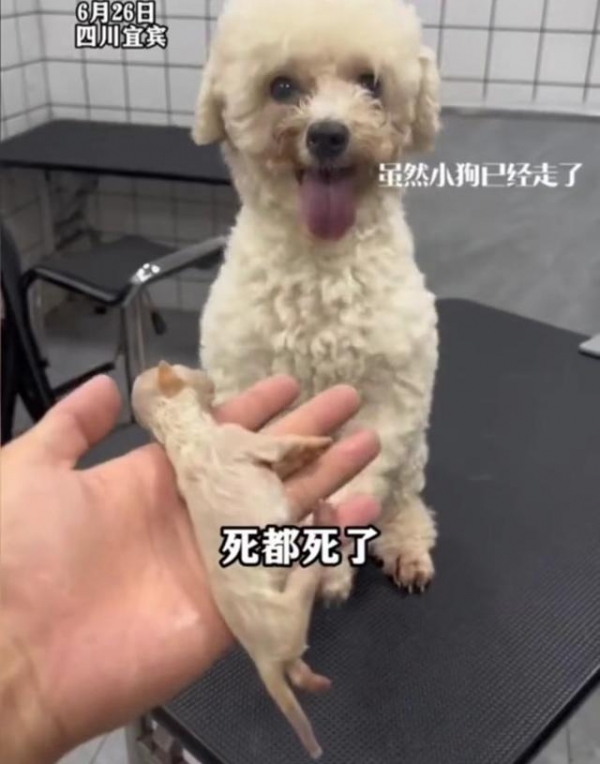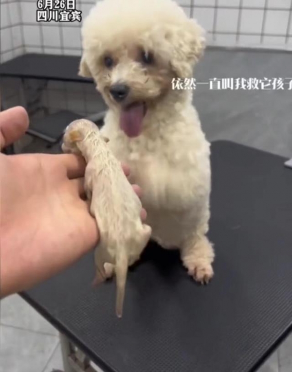 6月26日,据男子介绍,这位狗妈妈刚生了狗宝宝,可惜这只狗宝宝生下来就没有呼吸,也没有心跳,经过按摩、拍打以后依然丝毫没有反应。